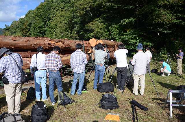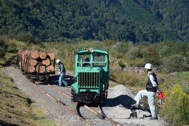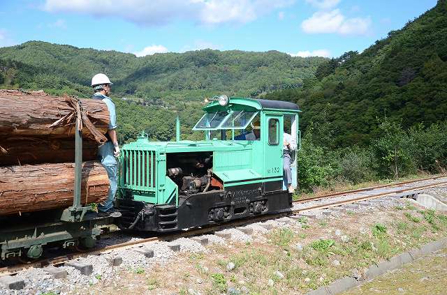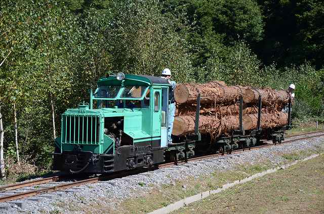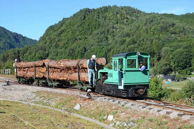 試運転をやっています。運材列車の再現ですわ。