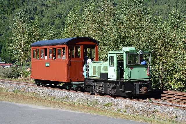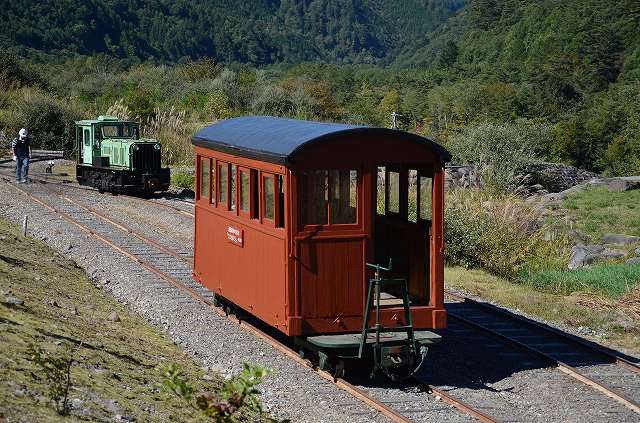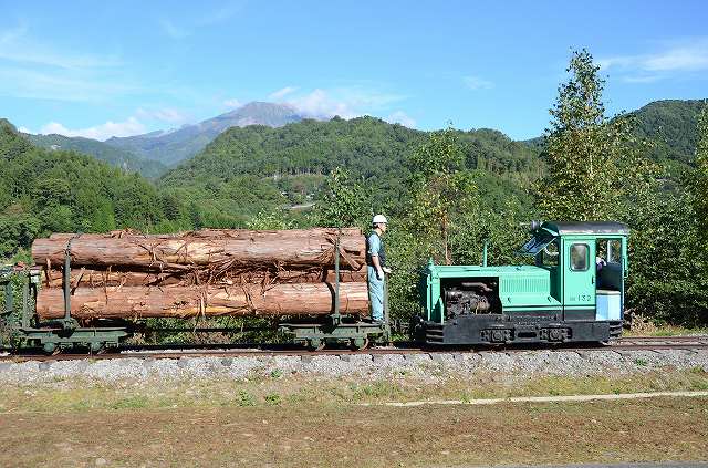 木曽の王滝村に来てますねん。いえね、今日は森林鉄道フェスティバルですねん。[りんてつ倶楽部さん]が整備されている森林鉄道の保存車両をバンバン走らせてくれはるんですわ。