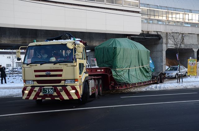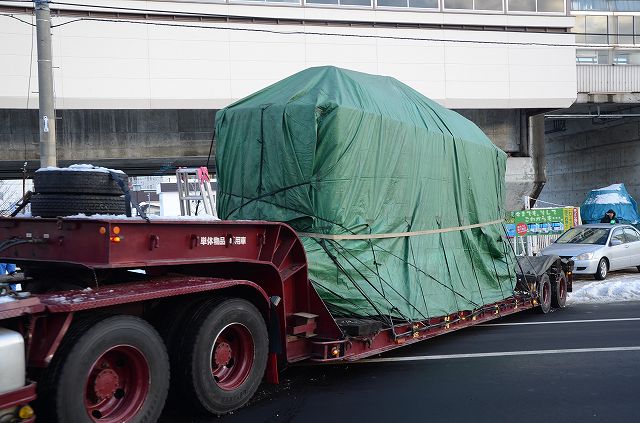 ええっと、札幌の自衛隊前に来ています。札幌市交通資料館の市電の保存車両を明治村へ輸送するんですわ。