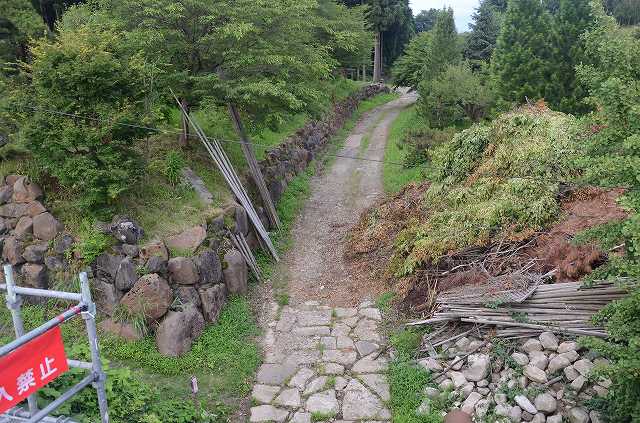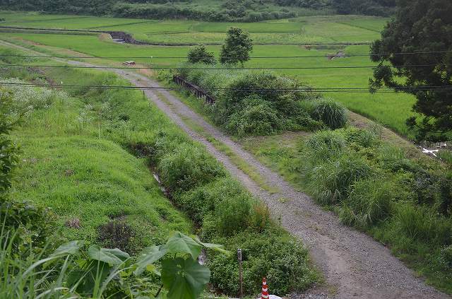 この前の道路が線路跡なんですが、拡幅されて面影はありません。大蒲原を過ぎてしばらく行くと、線路跡は砂利道に。