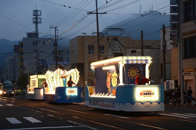 港まつりのパレードを見に来ましてん。いえね、函館港まつりはハイカラ號と花電車がパレードに参加するんですわ。