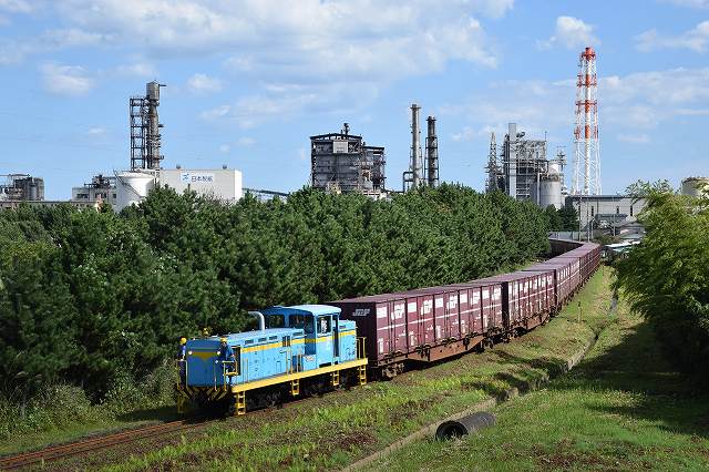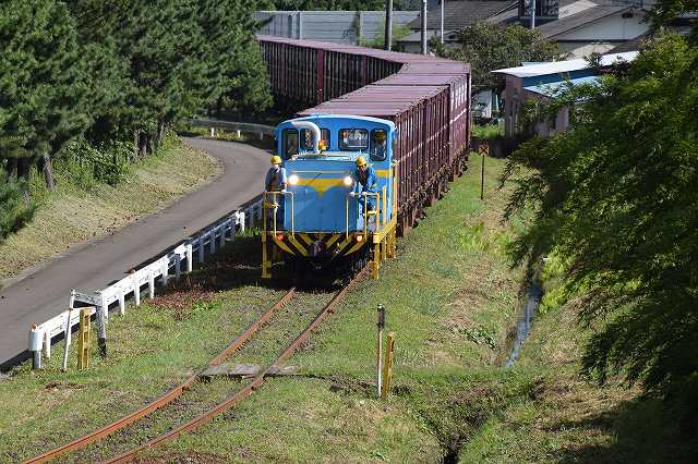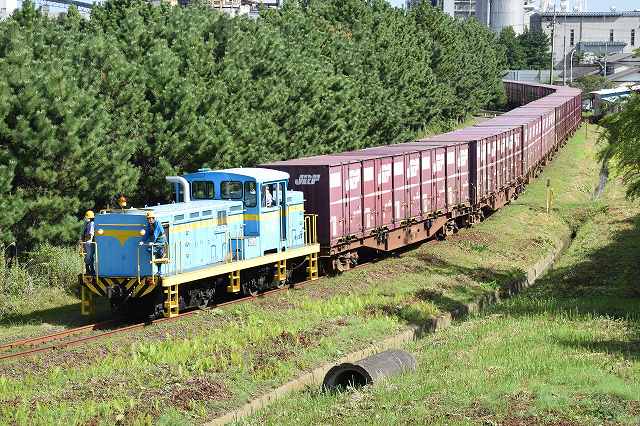 ええっと、この専用線は岩沼駅から分岐、日本製紙の工場まで3キロほどの長さです。8:00頃と13:30頃にコンテナを引っ張って工場から出てきます。入換がすんだらコンテナを牽いて工場へ戻って行きます。