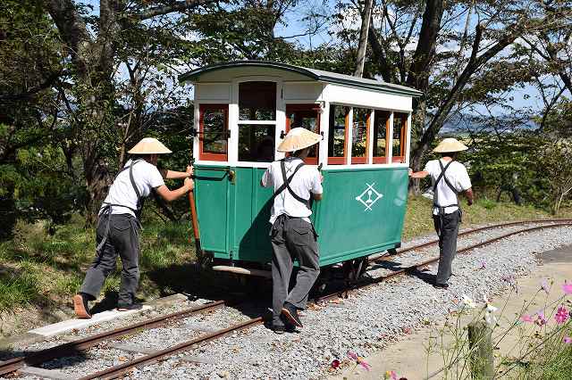 ええっと、松山人車軌道、言いましてな。昔東北線の松山町駅から町の中心部までを結んでいたものを復元したんですわ。で、毎年9月のコスモス祭り期間中に運転するんですな。