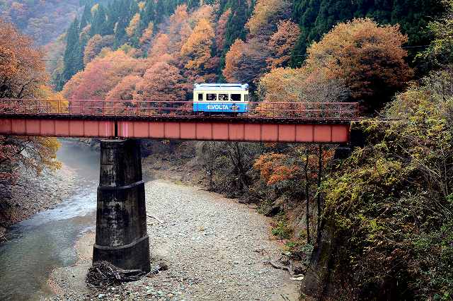 紅葉の中をコトンコトン。