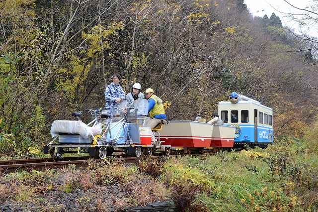 観光用のレールバイクでアシストしています。