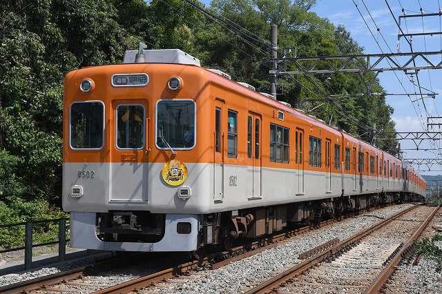 山陽電車に来てますねん。いえね、阪神電車の8502号にタイガースの優勝副標が付いてる、言うんで撮りに来たんですわ。