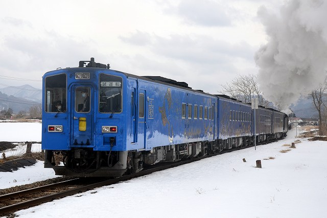 追っ掛けてみたら、遠野で追いつきましてん。で、遠野から県交通バスに乗換えて、関口のバス停へ先回り。バスを降りて踏切を渡ったとこが撮影地なんですわ。 [地図]