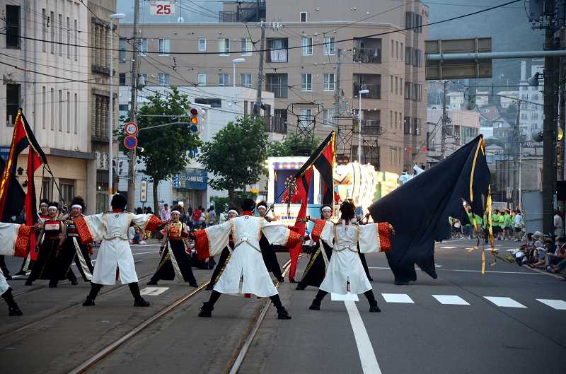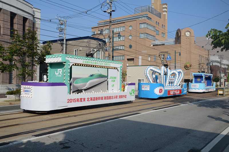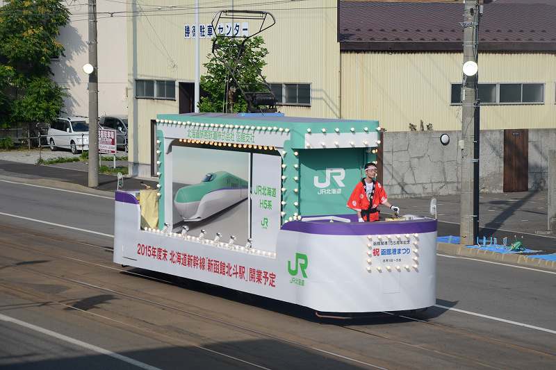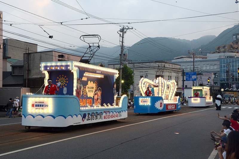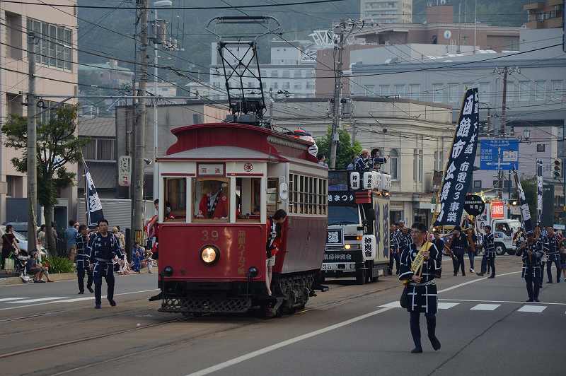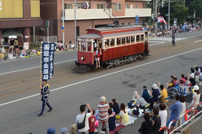 港まつりのパレードを見に来ましてん。いえね、函館港まつりはハイカラ號と花電車がパレードに参加するんですわ。