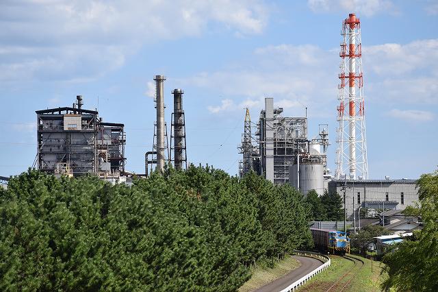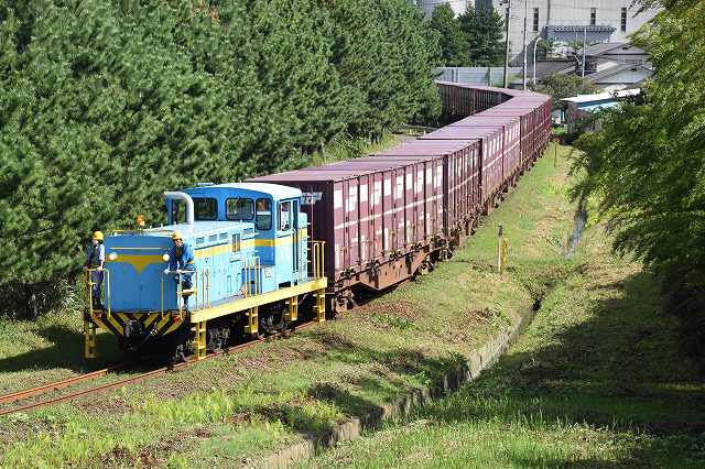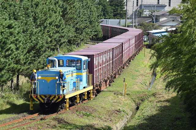 ええっと、この専用線は岩沼駅から分岐、日本製紙の工場まで3キロほどの長さです。8:00頃と13:30頃にコンテナを引っ張って工場から出てきます。入換がすんだらコンテナを牽いて工場へ戻って行きます。