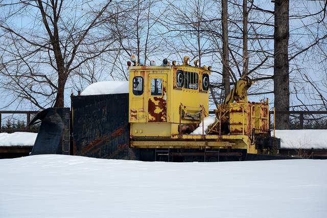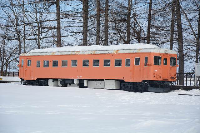 駅構内はこんな感じ。3両が保存されています。2月や言うのにまだ雪がいっぱいですわ。