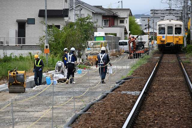 いえね、1087号と1071号が組んだ4連が走りそうなんですわ。それに複線化と新駅の様子も見ときたいし。そろそろ1101号が出場しそうやし。