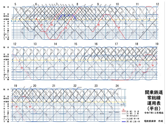 2連のスジ、2両固定が来る運用と両運車のニコイチが来る運用とで分かれてるみたいなんです。で、太線と点線で区別してみました。代走もあるんで、必ずとは限りません。