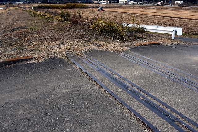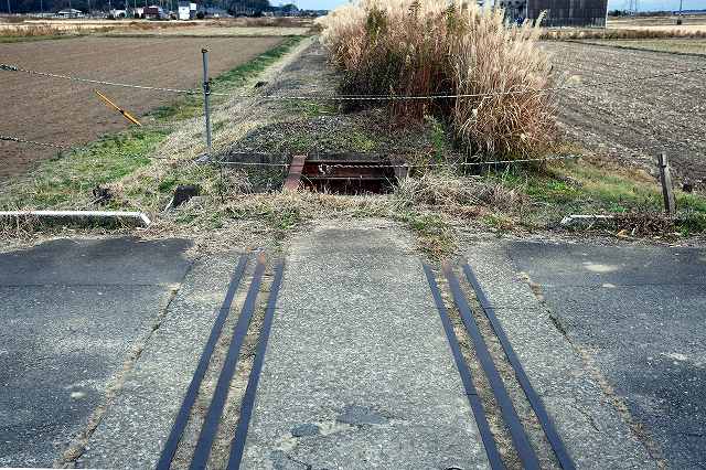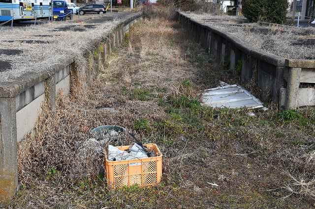 鉾田駅跡へ到着。うわ、ホームが残っていますわ。[地図]