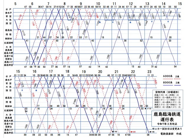 ええっと、鹿島臨海鉄道の[運用]はこんな感じ。